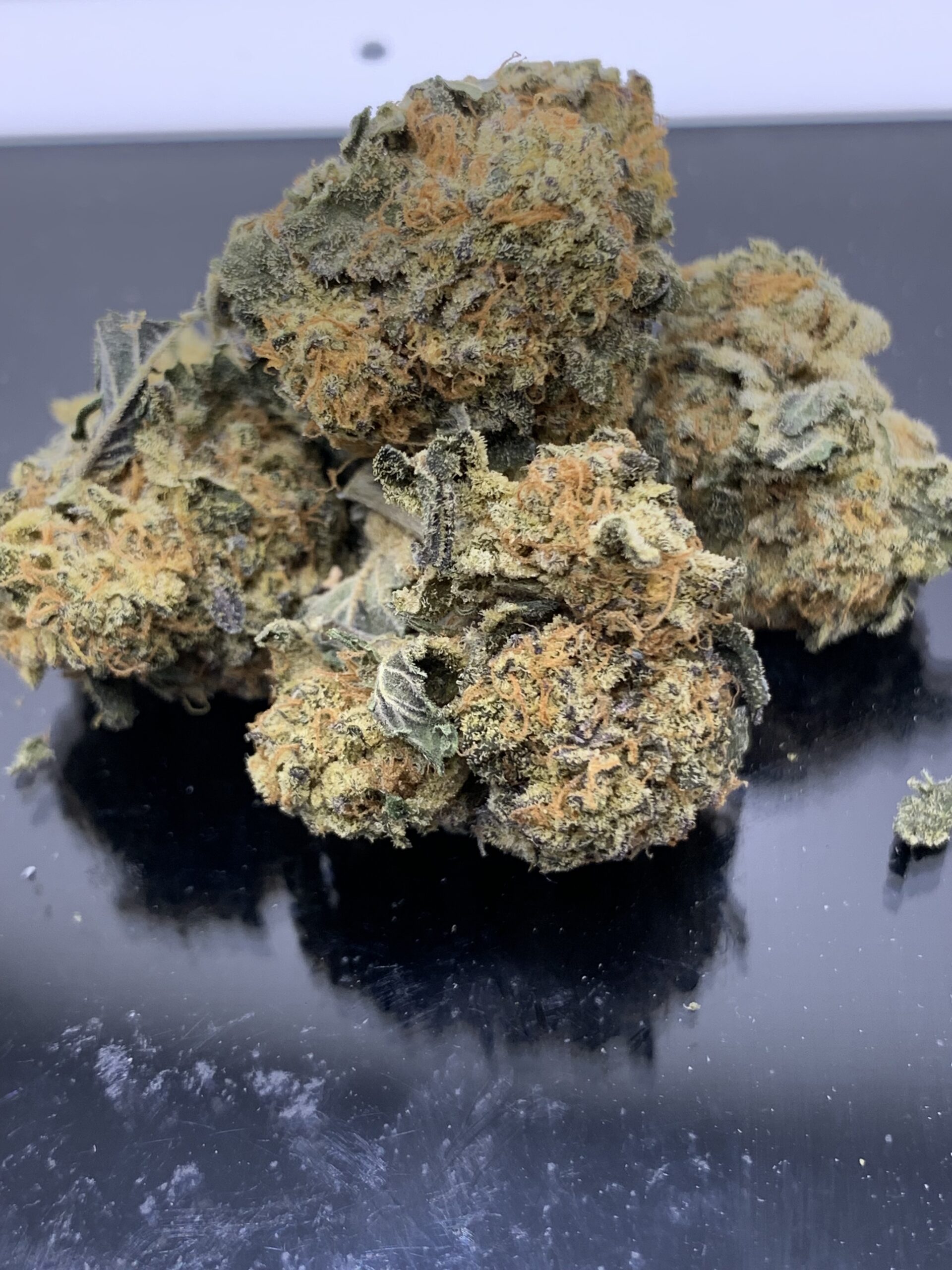 AK–OG Kush is an indica dominant hybrid strain (80% indica/20% sativa) created through crossing the potent AK-47 X OG Kush strains. This powerhouse combination yields the perfect indica that will have you feeling super kicked back and ready to enjoy your evening in no time at all. The AK-OG Kush high will begin with a slow burn, creeping in slowly in both mind and body. You’ll feel a light tingle start in the spine, inching its way throughout your entire being and leaving you feeling completely relaxed and a bit locked down to the couch. A heady euphoria accompanies this physical high, lifting your spirits and infusing you with an outgoing, chatty sensibility. In combination with its high 28% average THC level, these potent effects make AK-OG Kush a great option for treating a variety of conditions including chronic stress, insomnia, cramps or muscle spasms, depression or mood swings, arthritis and chronic pain. This bud has a classically spicy and sweet flowery citrus flavor with hints of rich black coffee upon exhale. The aroma is just about the same, although it has a pretty potent punch of peppery skunk that often shows up. AK-OG Kush buds have long and fluffy, pepper-shaped forest green nugs with lots of thin orange hairs and tiny, golden-white crystal trichomes.