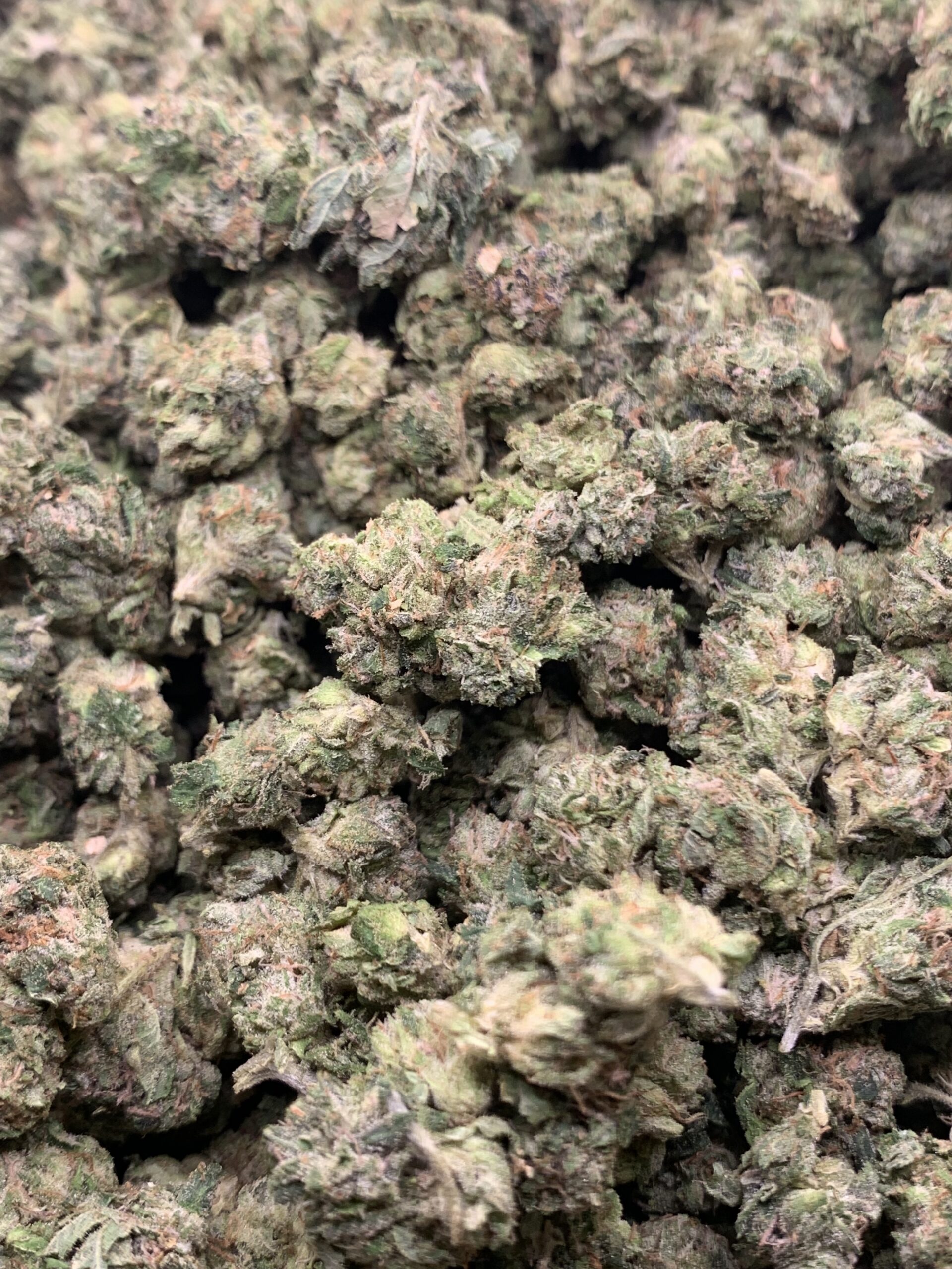 BC Kush is a 100% pure indica strain created by breeders at the infamous BC Bud Depot farm by crossing the insanely popular BC Grapefruit X Kush strains. This dank bud is a two-time winner of the Cannabis Cup for the Best Indica category and is famous for its rich indica heritage stemming from highly potent Afghani indica strains. BC Kush is one of the strongest cannabis plants known at present, and boasts a moderate 32% THC level on average. There are three distinct breeds of BC Kush, including Pink BC Kush, Purple BC Kush, and BC Kush OG. Patients describe the high with an extremely potent onset of a euphoric, couch-locked state accompanied by a head rush. Users feel insanely happy and may experience bouts of creativity and social inspiration accompanied by a completely relaxed body. This bud is ideal for treating pain and inflammation due to its cathartic and relaxing effects as well as autoimmune disorders. The BC Kush nugs are olive green rock-hard, woven with orange hairs, and frosted with glittering crystals and resin. These popcorn shaped nugs have a very strong, pungent smell of skunk and taste creamy and earthy.