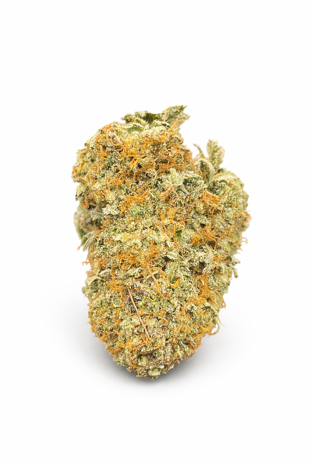 Blue Alien is a 100% pure indica strain created by crossing the infamous Blueberry X Alien Kush strains. This dank bud boasts a moderately high THC level that ranges from 20-21% and a myriad of potent indica effects. Users describe the Blue Alien high as one ideal to use at night. Initially you’ll a sense of slight euphoria accompanied by an all-encompassing full-body calm and dreamy cerebral effects. As the high continues, you’ll feel sleepy and sedated with a full-body couch-locked stone that slowly pulls you into a deep and peaceful sleep, free of any pain or interruptions. Due to these potent effects, Blue Alien is said to be an ideal strain for treating patients suffering from conditions such as insomnia, chronic anxiety or stress, and PTSD. Blue Alien buds have an aroma of sweet berry candy and a delicious taste of earthy sweet berry with a hint of floral candy that sweetens upon exhale. These buds have thick, dense pepper-shaped forest green nugs with a spattering of sparse fiery orange hairs and rich amber undertones. These nugs are completely frosted with a thick layer of glittering chunky white trichomes and dripping with sweet sticky resin.