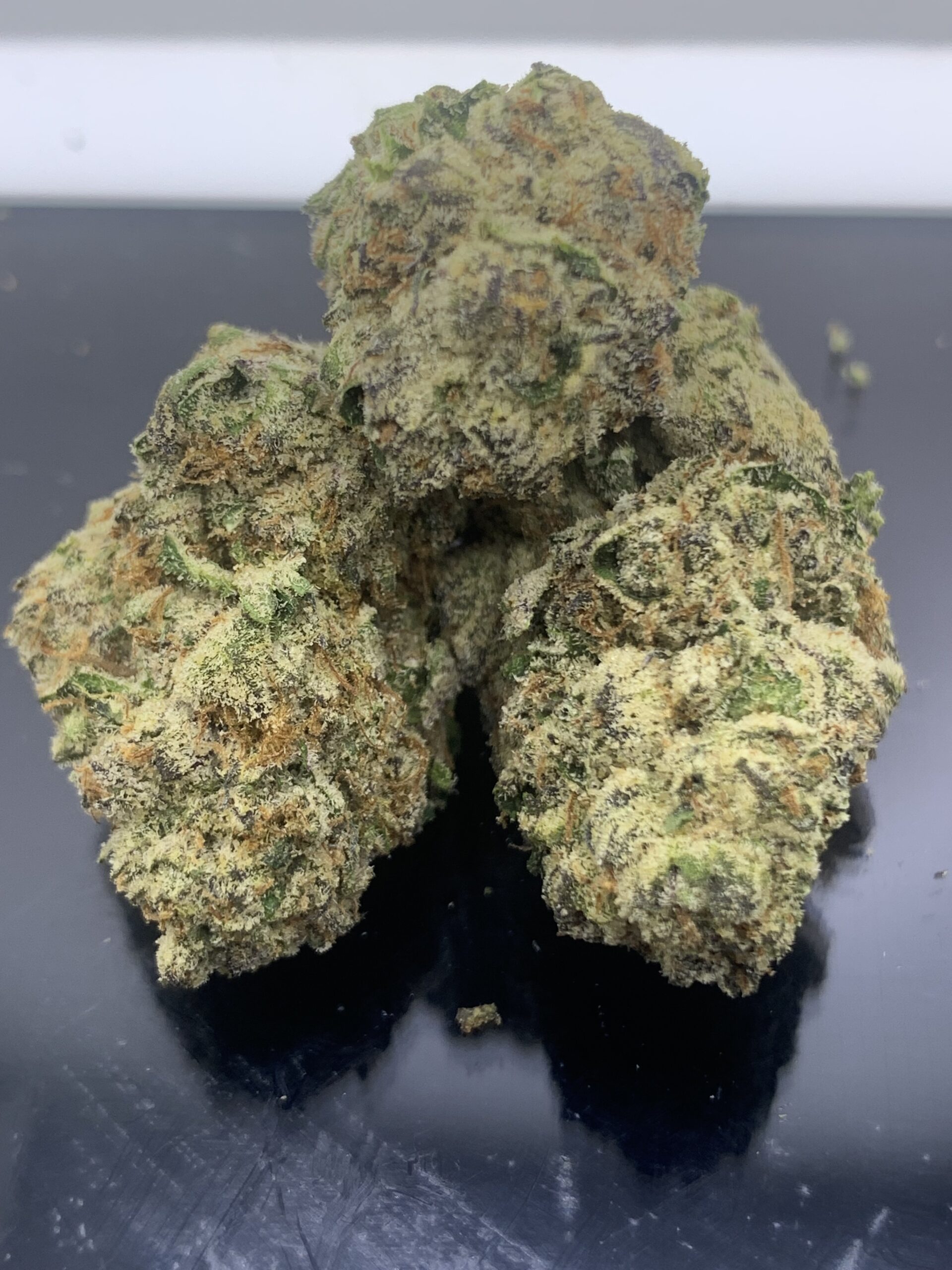 Blue Biscotti is an indica dominant hybrid strain (80% indica/20% sativa) created through crossing the delicious Gelato #25 X Girl Scout Cookies X South Florida OG strains. Named for its gorgeous appearance and delicious flavor, Blue Biscotti is the perfect choice for any lover of classic indicas. This bud has super dense diamond-shaped dark forest green nugs with vividly blue undertones, thin clear amber hairs and a super frosty thick coating of tiny, blue-tinted white crystal trichomes. As you pull apart each sticky little nugget, aromas of fresh fruity blueberries and spicy vanilla cream are released. The flavor is very similar, with a sweet fruity blueberry overtone accented by creamy vanilla and a touch of spicy nuttiness, too. The Blue Biscotti high is just as delicious, with calming full-bodied effects that will lift your spirits while leaving your body feeling totally kicked back and at ease. You’ll feel a heavy physical buzz wash over you as your mind begins to lift, leaving your body locked to the couch and fully sedated as your mind lifts higher and higher into happiness. With these effects and its super high 31% + average THC level, Blue Biscotti is often chosen to treat experienced patients suffering from conditions such as chronic stress or anxiety, depression, chronic pain and PTSD.
