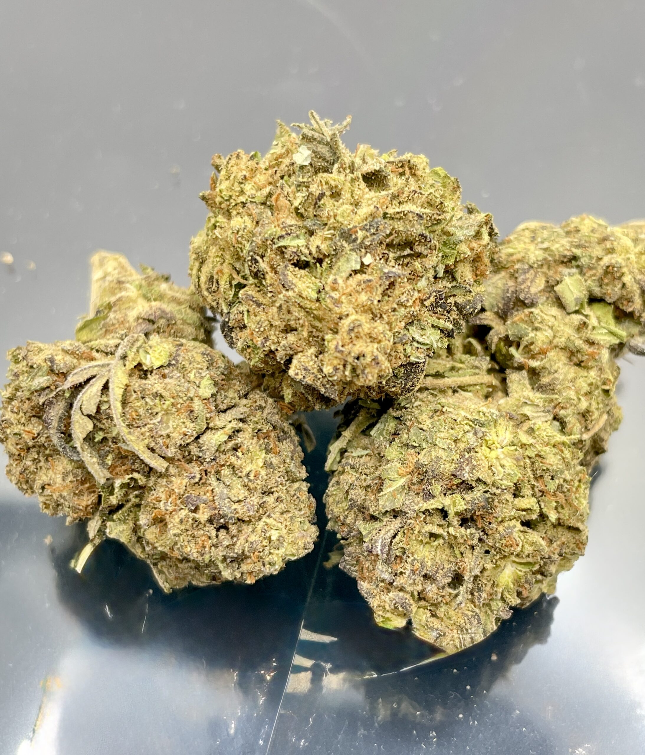 This strain is a near-pure indica, though the exact ratio of sativa to indica isn’t widely reported. THC and CBD levels are also hard to come by, though reviews suggest it’s a relatively potent medical choice. At least one test indicates THC can make up more than 28% of this strain. But the lack of data on CBD content makes Blue God a poor choice for patients who need CBD preparations to treat seizures or other health problems. On the other hand, this is a very good choice for treating irritability, chronic pain, insomnia, and daily stress. The high is largely physical, with a calming body buzz, sleepiness, and couch-lock effects. But there are also limited cerebral qualities, including psychoactive euphoria. Grape and Kush are the dominant notes in the taste and smell of this pungent strain, while the nugs are dark, purple, and sticky. Expect the usual side effects, including dry mouth and watery eyes, though specific reports are scarce. Blue God isn’t especially popular, but it sells at medical marijuana dispensaries in California, Oregon, Colorado, Arizona, and British Columbia.