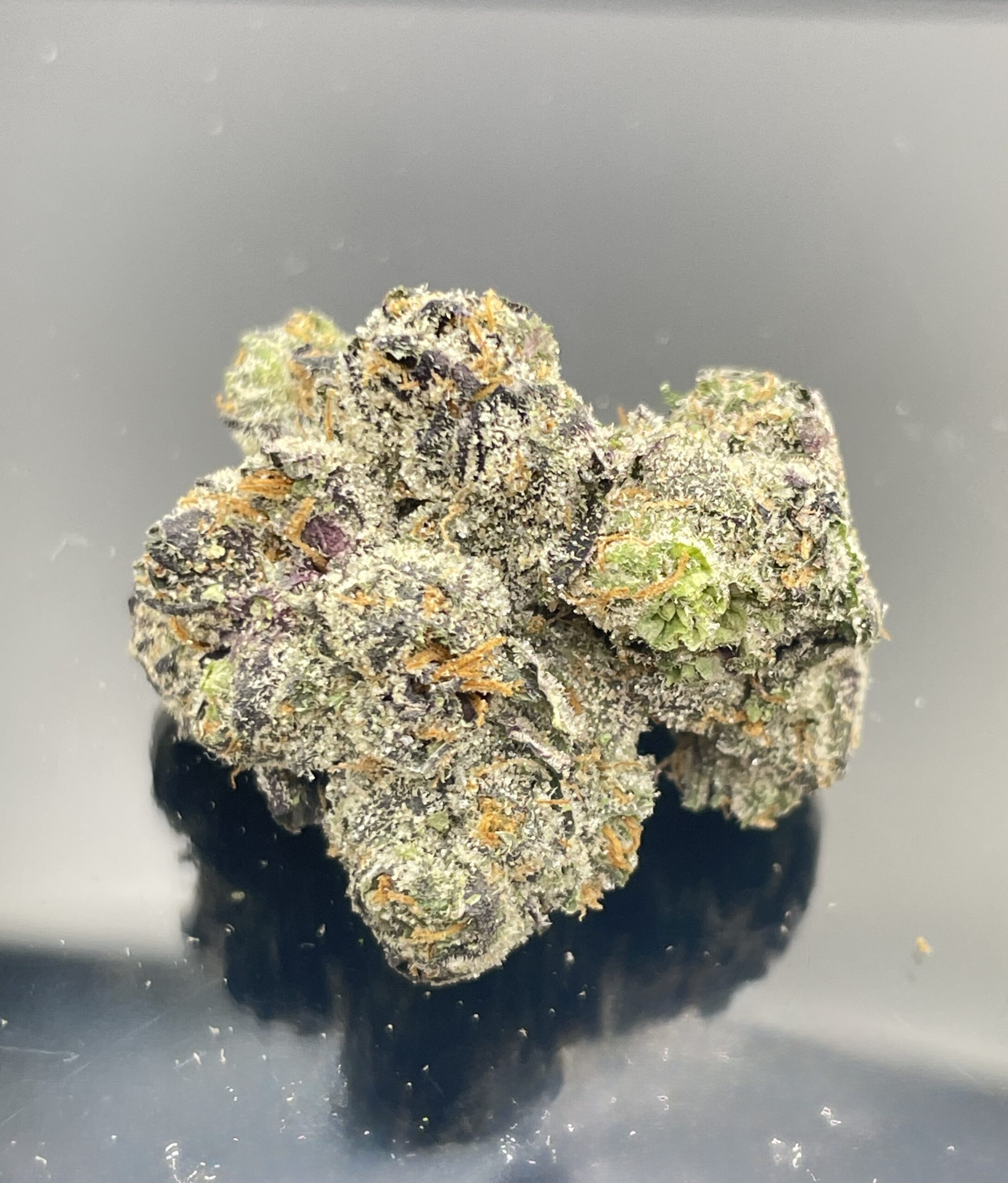 Blueberry Pink Lemonade is a slightly indica dominant hybrid strain (60% indica/40% sativa) created through crossing the potent Blueberry X Pink Lemonade strains. This tasty combination creates a super potent child strain with soaring, bright effects that will activate the mind and numb the body in just one simple little toke. The taste of Blueberry Pink Lemonade is much like what you’d expect, blending together sweet, sugary lemonade with spicy grapefruits and juicy blueberries. The aroma is very much the same, although it does have added layers of fresh flowers and spicy black pepper added into the mix. The Blueberry Pink Lemonade high will hit you as soon as you exhale in the mind, slamming into you with a bright hit of energy and creativity. You’ll find that your euphoria is exponentially expanded as well, leaving you feeling insanely happy and a bit giggly at times. A super relaxing physical high comes next, sinking into your body and leaving you feeling stoney and calmed from head to toe. With these effects and its insanely high 32-44% average THC level, Blueberry Pink Lemonade is often suggested to treat very experienced patients with conditions including chronic fatigue, chronic stress, nausea, chronic pain and cramps or the symptoms of PMS. Blueberry Pink Lemonade buds have fluffy, spade-shaped forest green nugs with dark blue leaves, thin orange hairs and tiny, sparkling blue-tinted white crystal trichomes.