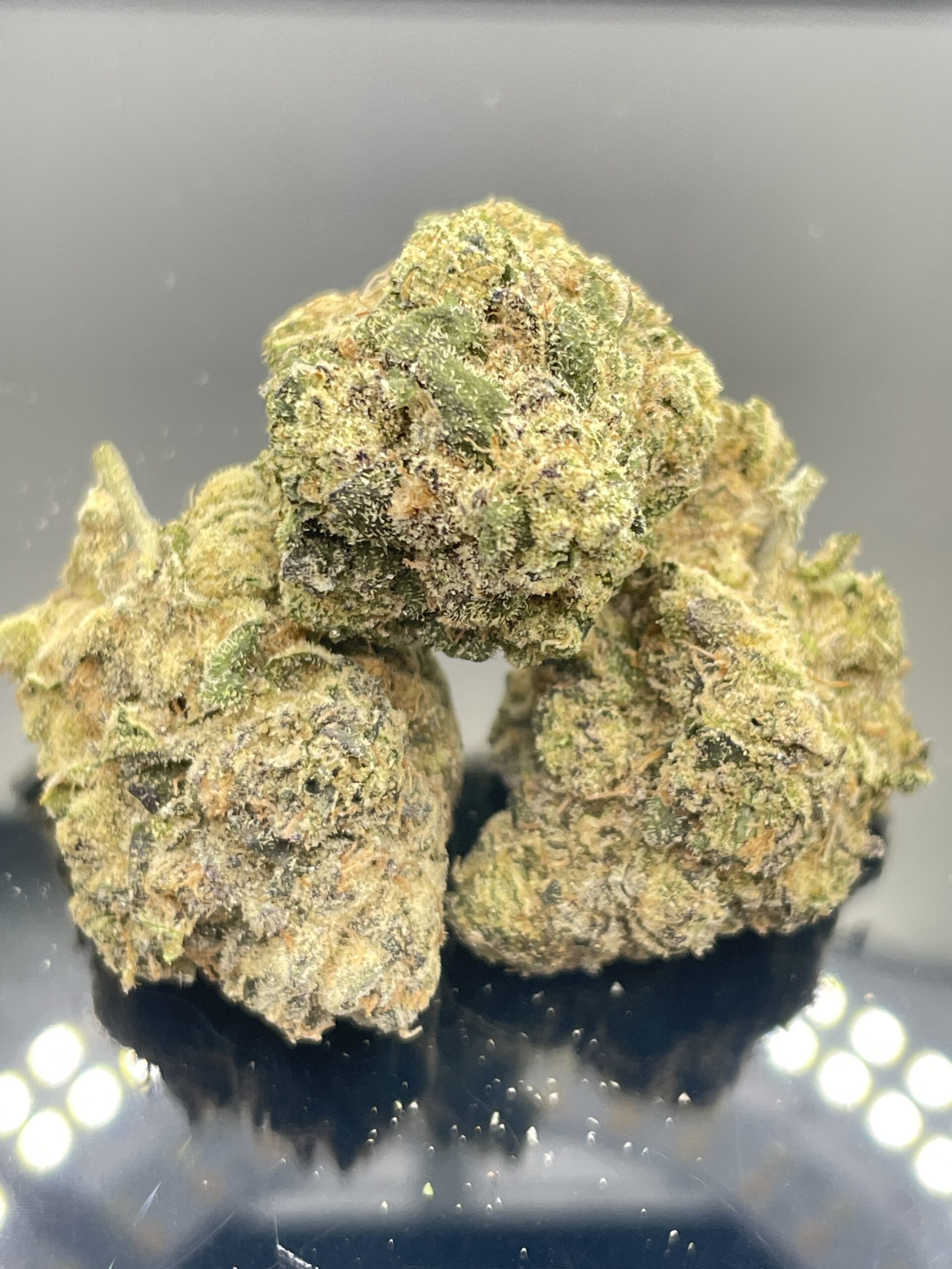 Cookies and Cream #106 is a rare sativa dominant hybrid strain created through crossing the infamous Girl Scout Cookies with another unknown sativa-dominant hybrid strain. This bud is infamous for its super delicious flavor and clear-headed effects that are intense with a slow build to a bright finish. Cookies and Cream #106 buds have a super sweet herbal flavor with a creamy exhale that turns slightly cheesy at times. The aroma is earthy and pungent with a creamy cheese overtone that’s accented by herbs and spices. The Cookies and Cream #106 is just as delectable as the high, with a vibrant feel that’s perfect for when you need to get work done during the day. You’ll feel a sense of focus and motivation that enhances your creativity and work ethic, leaving you accomplishing task after task on your to-do list. With these effects and its high 31-32% average THC level, this bud is perfect for treating conditions such as ADD or ADHD, chronic fatigue, depression, insomnia, and stress. This bud has super frosty fluffy popcorn-shaped nugs with dark amber hairs and dark olive green leaves throughout.