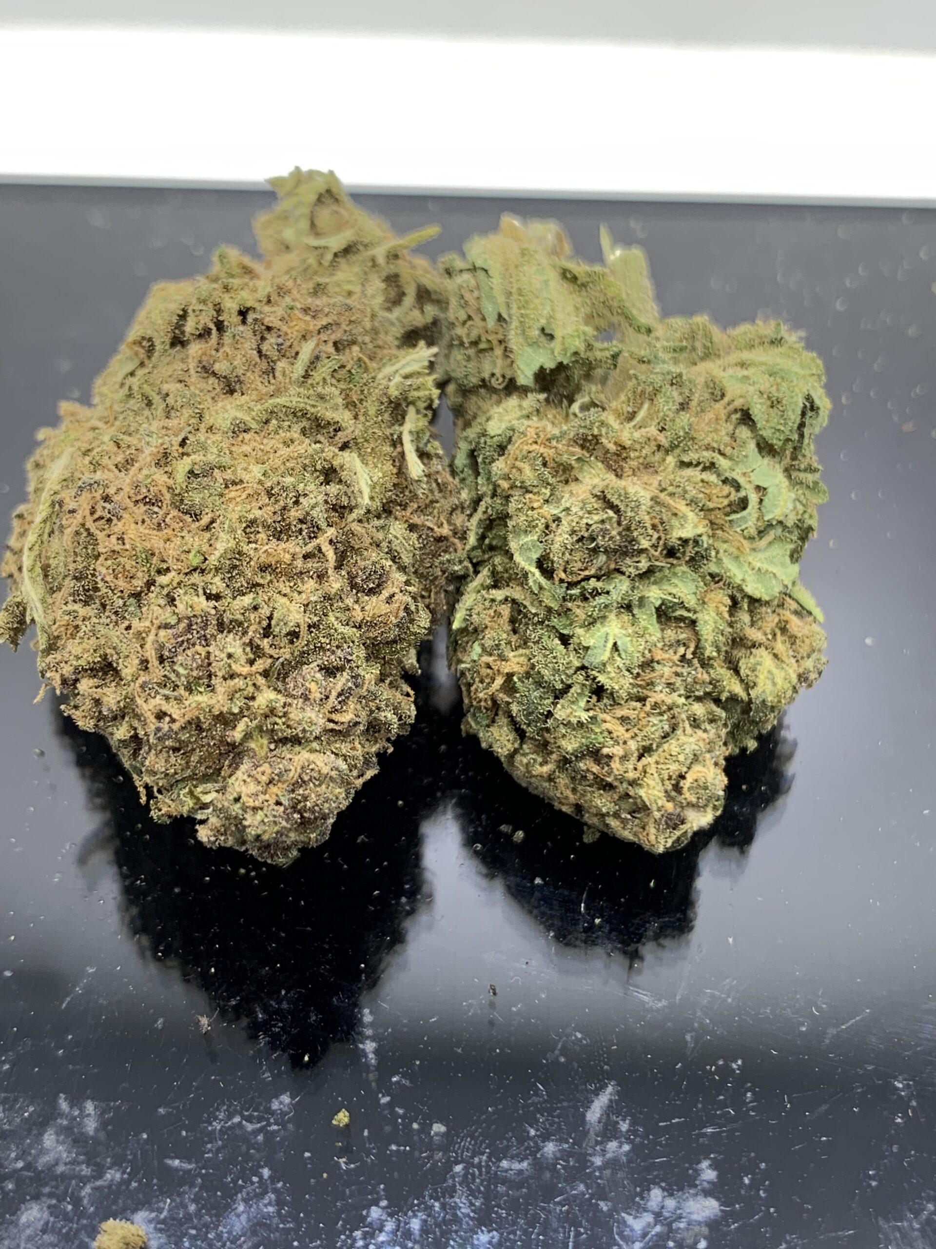 Dole Whip is a slightly sativa dominant hybrid strain (60% sativa/40% indica) created through crossing the delicious Tropic TrufflesX Cookies N Cream strains. Named for the beloved Hawaiian treat, Dole Whip is the perfect choice for any hybrid lover who appreciates a slight sativa lean in their bud. Like its name suggests, Dole Whip packs a sweet and creamy tropical pineapple citrus flavor with hints of sugary nuttiness galore. The aroma is just as delicious, with a sweet yet sour pineapple overtone accented by sugary creaminess and a hint of nuttiness. The Dole Whip high hits you a few seconds after your first exhale, rushing through your brain with an electrifying sense of mental energy. You’ll feel lifted and motivated, but not too focused, in this state, ready to get up and get moving. A light physical energy accompanies this heady boost as well as an overall feeling of relaxation that won’t affect your mood or energy. Thanks to these effects and its high 27% average THC level, Dole Whip is often chosen to treat patients suffering from chronic pain, depression or mood swings, chronic fatigue, headaches or migraines and chronic stress. This bud has oversized spade-shaped airy dark olive green nugs with purple undertones, thick amber hairs and frosty dark purple-tinted white crystal trichomes.