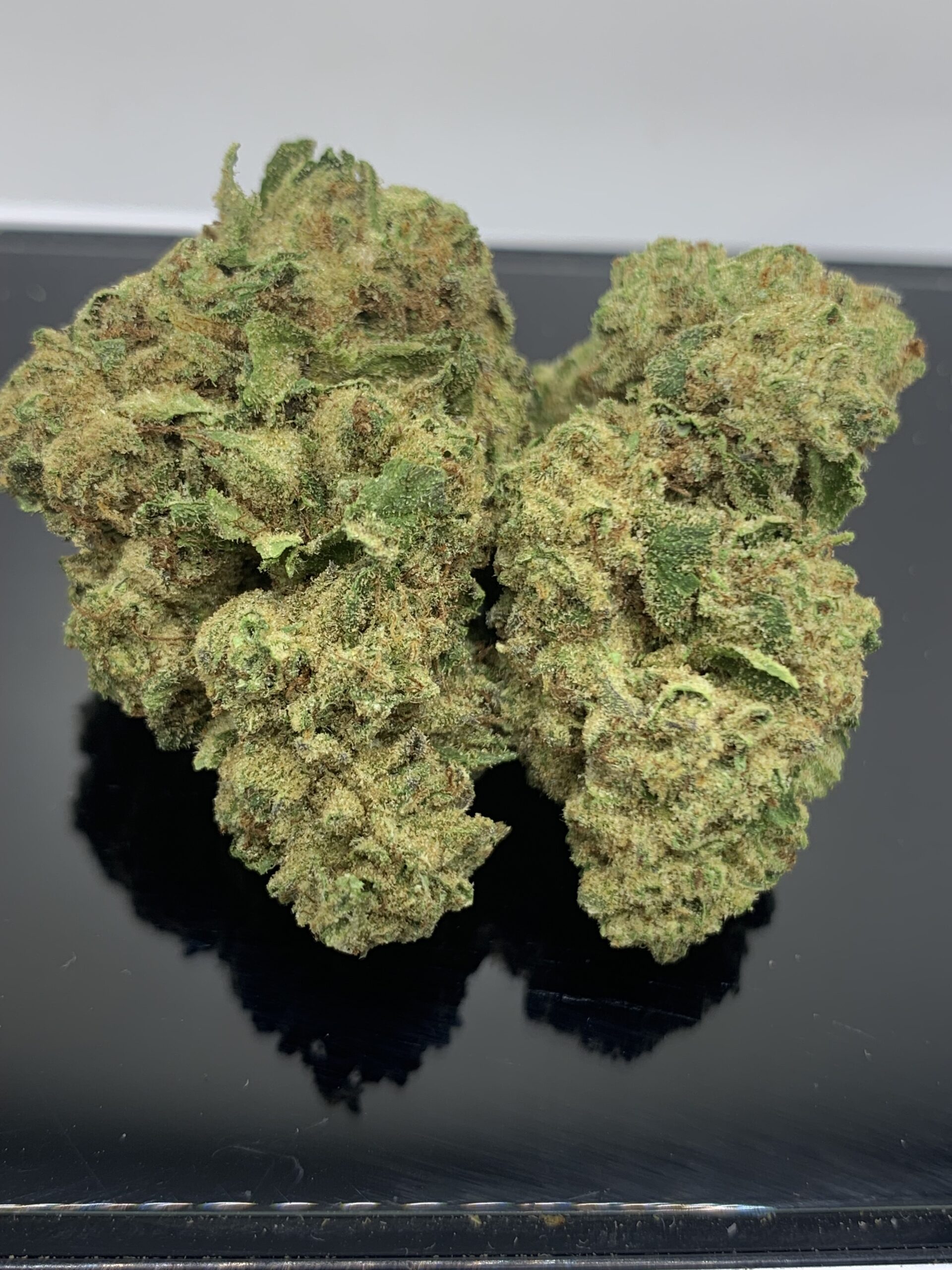 Face Mask is a slightly indica dominant hybrid strain (60% indica/40% sativa) created through crossing the powerful Gelato XFace Off OG strains. A super bright and heady bud that will leave you feeling like you can finally take off your mask and embrace the world around you, Face Mask is a great option for any fan of balanced hybrid strains. The Face Mask high will hit you immediately, flooding your mind with a soaring sense of hazy euphoria that is both energizing and mentally clarifying. You’ll feel focus and creativity come easily at this point, lending themselves well to any social situation. A soothing body high accompanies this heady lift, keeping your physical form relaxed as your mind soars. Thanks to these potent effects and its super high 29% average THC level, Face Mask is often suggested to treat experienced patients with conditions including chronic stress or anxiety, chronic fatigue, depression or mood swings and ADD or ADHD. This bud has a sweet and citrusy lemon gelato flavor with a creamy vanilla cake exhale. The aroma is almost like you’re sitting next to a freshly baked vanilla cake that’s topped with sweet, sugary lemon icing. Face Mask buds have oversized and fat, spade-shaped bright neon green nugs with deep purple leaves, thick red-orange hairs and chunky, golden-white crystal trichomes.