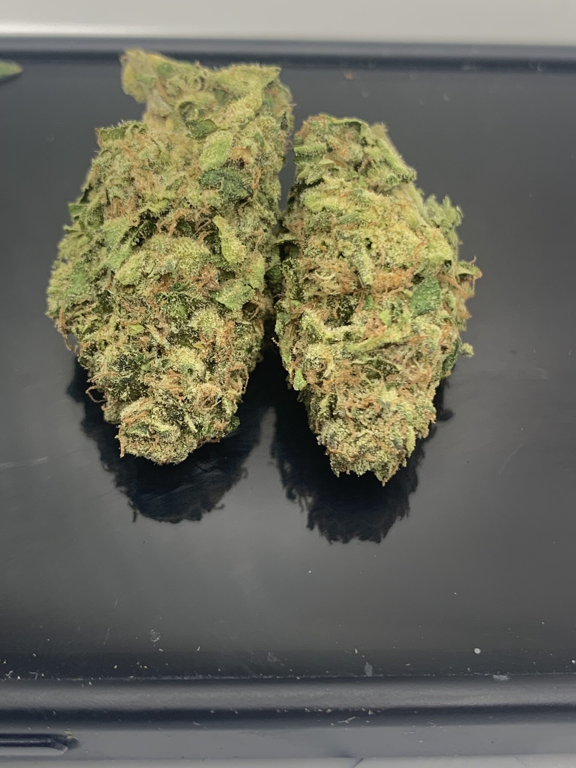 Fire Alien Freeze, also known as “FAF,” is an indica dominant hybrid strain (80% indica/20% sativa) created through crossing the delicious Fire Alien Kush X The Freezestrains. This powerhouse of a bud packs a heavy-hitting high that will have you feeling kicked back and like you have zero cares in the world for hours. The high will settle in slowly, beginning with a creeping sense that inches your brain into a lifted place of happiness. A deepfelt calm accompanies this cerebral lift, filling both mind and body with a pleasant weightiness. A giddy, giggly and stoney effect comes next, knocking your brain out into a plane of nonexistence as you settle further and further into the couch. Combined with its high 30% + average THC level, these hard-hitting effects make Fire Alien Freeze a great choice for treating depression, chronic pain, chronic stress, headaches or migraines and insomnia. This bud has a sweet and sour citrusy lemon flavor with a spicy and flowery lavender pine exhale. The aroma is just as fragrant, with flowery lavender overtones accented by spicy earthiness and a hint of citrusy lemons. Fire Alien Freeze buds have long and fluffy, pepper-shaped bright neon green nugs with thick, furry orange hairs and chunky, golden-white crystal trichomes.