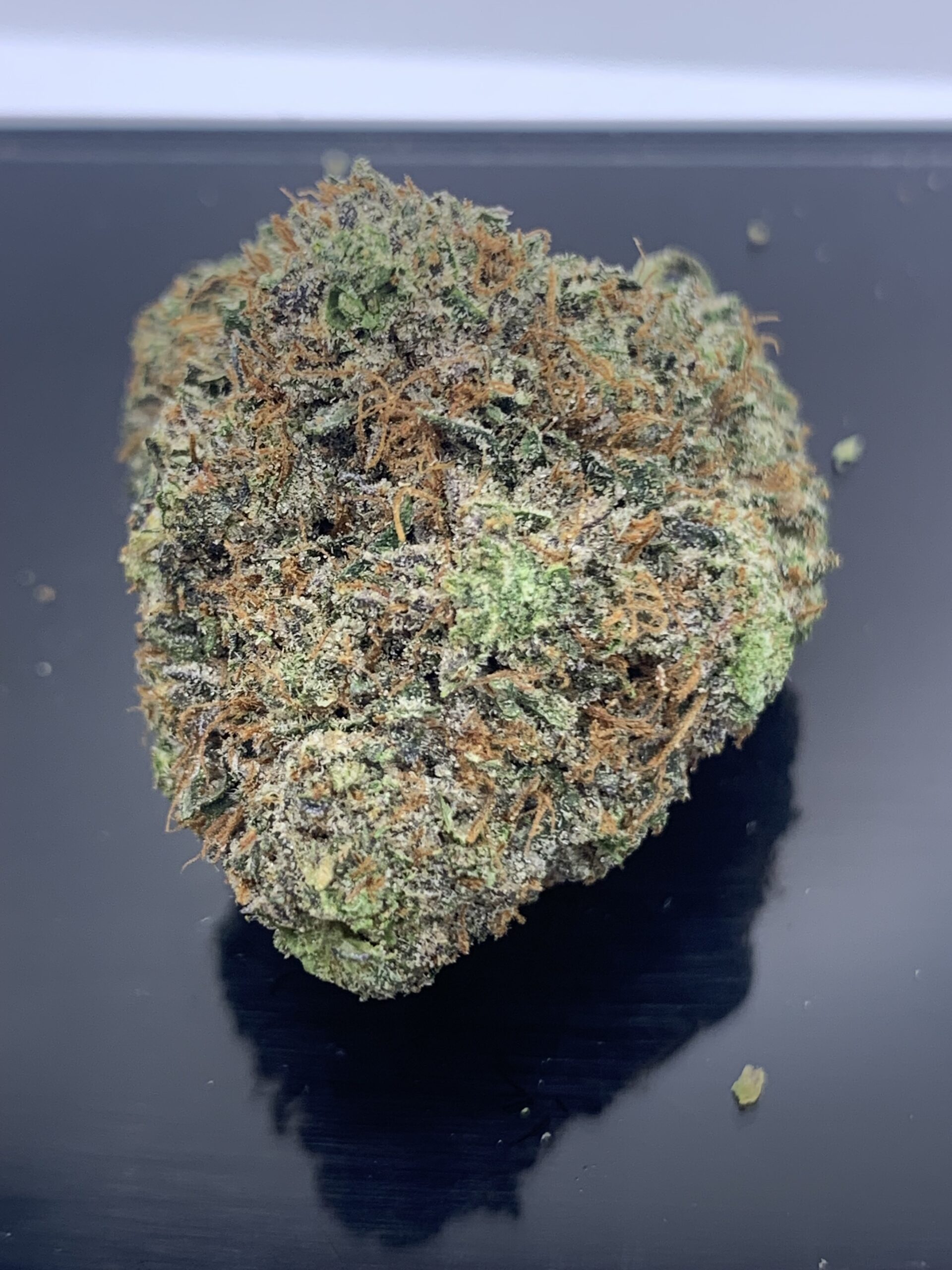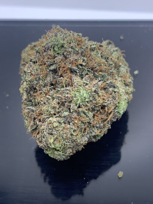 Freezer Jam is an indica dominant hybrid strain (70% indica/30% sativa) created through crossing the potent Garlic Cocktail X Cold Snap strains. This potent bud offers a uniquely flavorful experience that will have both your tastebuds and your mind feeling like you truly struck gold. The taste of Freezer Jam is sweet yet savory, combining skunky herbs and dank spices with sweet, sugary cookies in each and every toke. The aroma is a bit heavier, bringing in natural hints of woody pine and earthy pungency that balance out the sweet and savory mix. The Freezer Jam high will settle in slowly, beginning with a calming body high that creeps in and melts you into the couch entirely from head to toe. This heavy melt will soon begin to seep into your brain, leaving you feeling hazy and out of it yet totally happy. This combination will eventually turn sedative, so get ready to get dozing with this bud! Thanks to these powerful effects and its super insanely high 34-35% average THC level, Freezer Jam is often chosen to treat chronic stress, chronic pain, depression or mood swings, insomnia or night terrors, inflammation, arthritis and muscle spasms or cramps. This bud has dense and rounded, bright emerald-green nugs with rich amber undertones, thin furry orange hairs and chunky amber-white crystal trichomes.