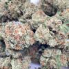 Gelato X is a slightly indica dominant hybrid strain (60% indica/40% sativa) created through crossing the potent Runtz X Thin Mint Girl Scout Cookies strains. This tasty bud offers a truly delicious, dessert-like flavor with a happy, sociable high that will get you ready to get chatting with anyone around you in no time. The taste of Gelato X is truly satisfying, blending together creamy, sugary vanilla gelato with hints of sharp mint and nutty cookies. The aroma takes it up a level or two, adding in layers of citrusy lemons and spicy herbs to the mix. The Gelato X high will hit you slowly, creeping in with a building effect that soon takes on both mind and body with a powerful potency. You’ll find your mind lifted into a state of happiness that helps to numb the brain and infuses you with a sense of outgoing sociability. As you get chatting with anyone around you, a calming physical high will begin to take hold, keeping your body anchored no matter how far you mind fades. With these effects and its super high 29% average THC level, Gelato X is often chosen to treat a wide variety of conditions including chronic stress or anxiety, chronic pain, chronic fatigue, depression and nausea or appetite loss. This bud has fluffy, popcorn-shaped forest green nugs with thin orange hairs and chunky white trichomes.