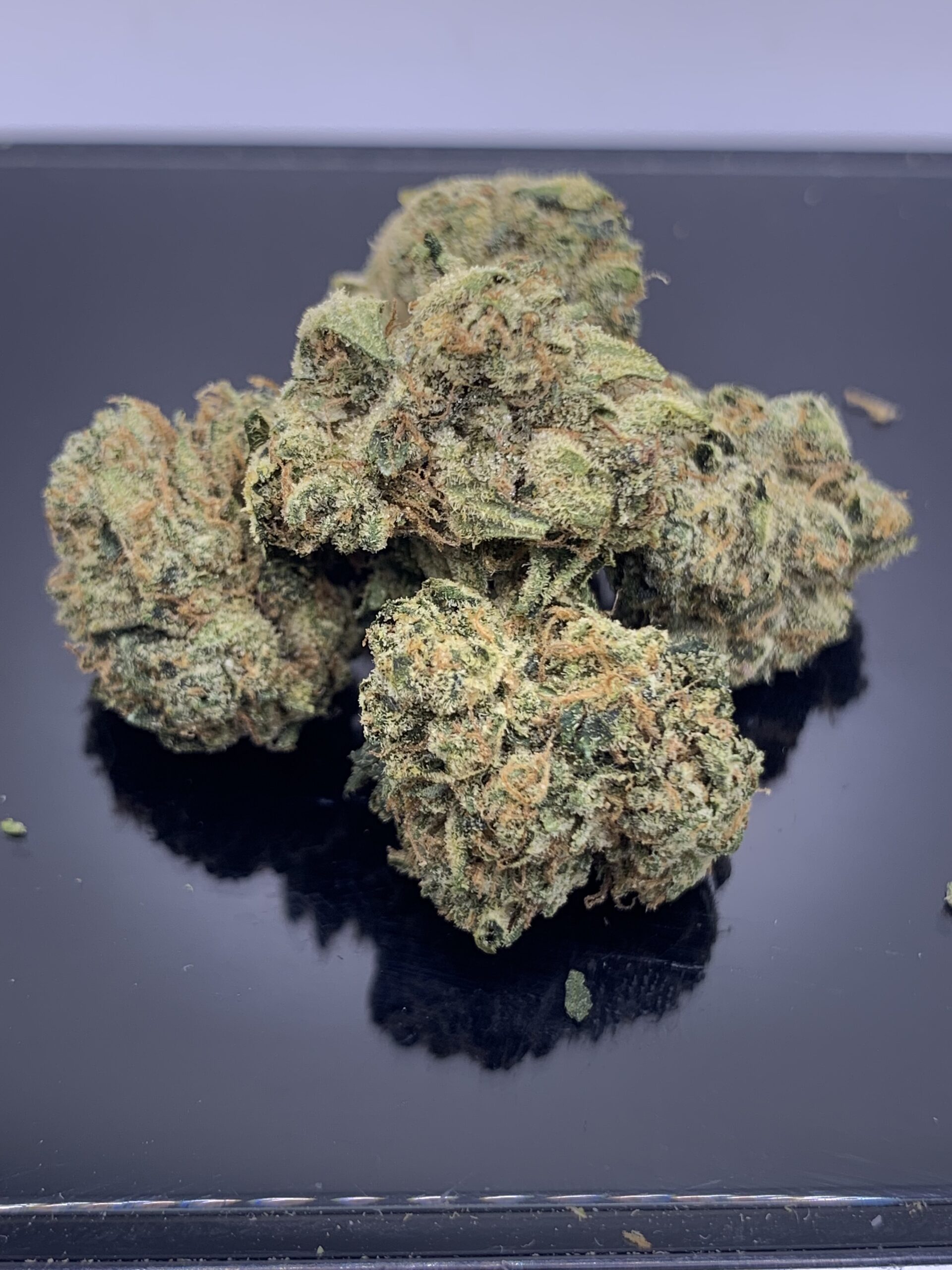 Hash Burger is a slightly indica dominant hybrid strain (60% indica/40% sativa) created through crossing the iconic Han Solo Hash Plant X Double Burger strains. Named for its celebrity parentage and bold flavor, Hash Burger is a great balanced option for any indica lover. This bud packs a sweet yet super spicy lemony hash taste accented by a touch of woody pine and fresh flowers. The aroma is just as delicious, although it does take the spicy level up a notch or five. The Hash Burger high will come burning through a few seconds after your final exhale, working through your brain first before taking on the rest of your body. You’ll find your spirits lifted as your mind is filled with a happy euphoria that instantly edges out any bad moods or negative thoughts. A physical relaxation comes next, seeping into your body and leaving you feeling pretty couch-locked and super sleepy at times. With these effects and its super high 31% average THC level, Hash Burger is often said to be perfect for treating a variety of conditions including insomnia, depression or mood swings, chronic stress or PTSD and appetite loss. This bud has dense spade-shaped forest green nugs with bright amber undertones, thin hairs and chunky matching trichomes.