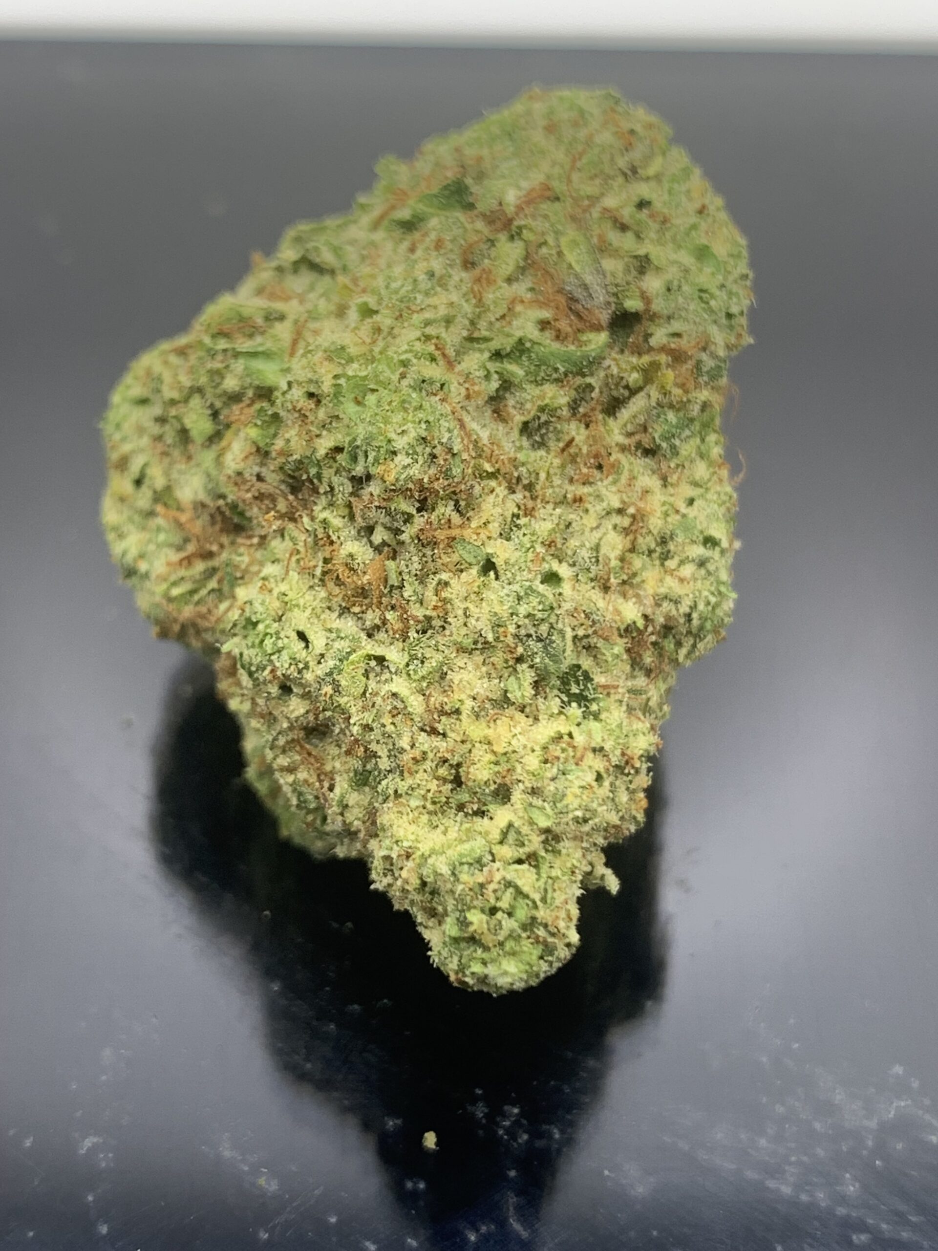 Ice Cream Breath, also known as “ICB,” is a slightly indica dominant hybrid strain (60% indica/40% sativa) created through crossing the tasty Ice Cream Cake X Grateful Breathstrains. This celebrity child boasts a super delightful flavor with soaring effects that are often described as a ‘one-way ticket to inner peace.’ The taste of Ice Cream Breath is the perfect combination of its parent strains, with a sweet and creamy sugary vanilla taste accented by delicious honey and hints of fresh fruits. The aroma is just about the same, almost like you’re about to dig into a bowl of freshly scooped vanilla ice cream topped with juicy fruits while you’re hanging out at a gas station. The Ice Cream Breath high will settle in slowly, beginning with a subtle boost of happiness that gently works its way into your mind. As your mental state is lifted, a calming sense of peace will begin to wrap its way around you, allowing your body to feel fully relaxed and you to feel sweet relief from any aches and pains. In combination with its high 31% average THC level, these effects give Ice Cream Breath an edge in treating chronic stress or anxiety, PTSD, depression or mood swings, chronic pain and bipolar disorder. This bud has oversized and dense, triangle-shaped bright neon green nugs with golden undertones thin orange hairs and tiny, sparkling white crystal trichomes.