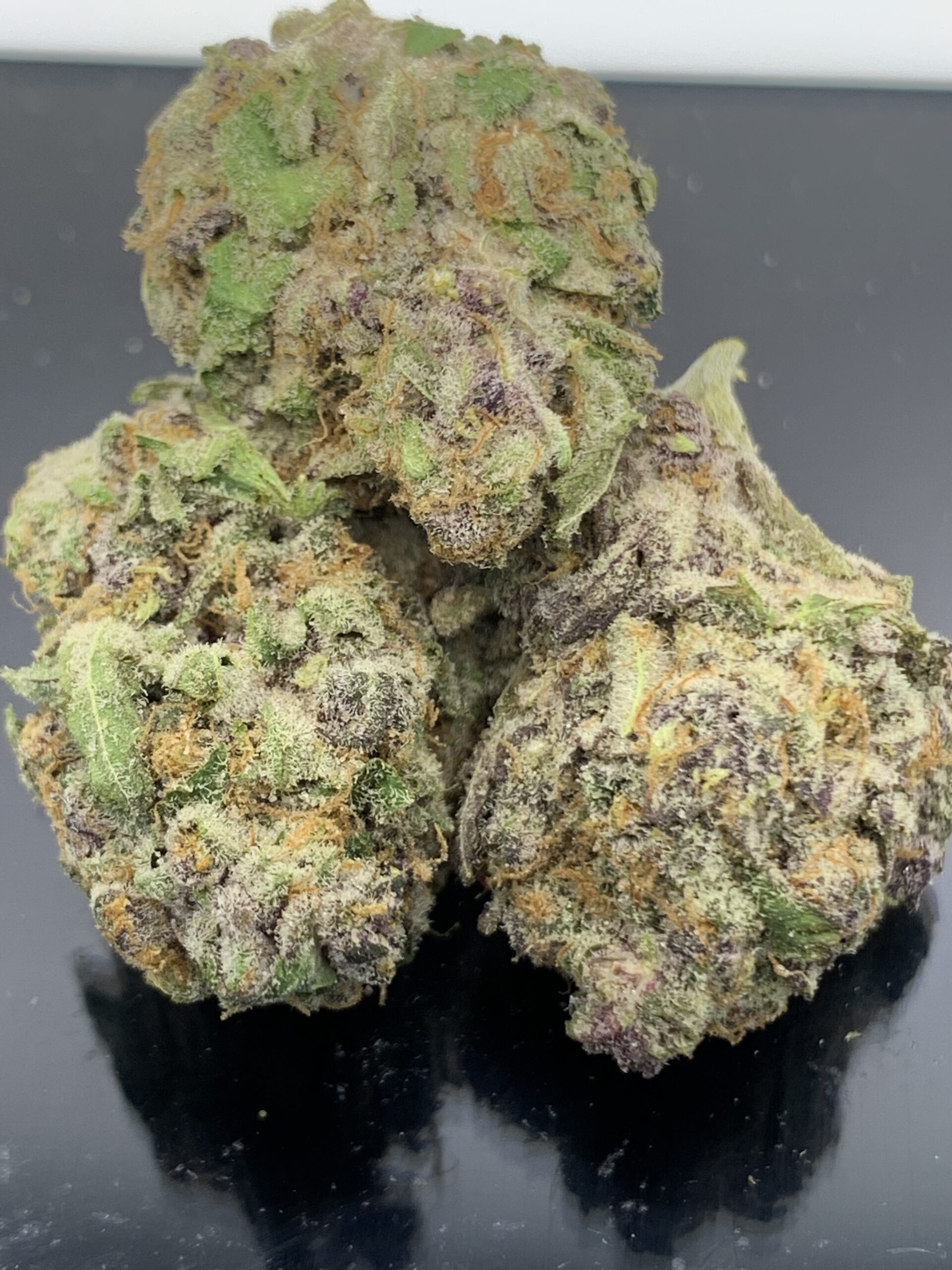 Ice Pop is an evenly balanced hybrid strain (50% indica/50% sativa) created through crossing the potent Tangie X Peach Crescendo strains. This tasty bud packs a potent punch of flavors and soaring effects that will lift you up before settling you right back down for the night. The taste of Ice Pop is truly memorable, with a blend of sweet fruity citrus, ripe juicy peaches and zesty oranges dancing across your tongue with each toke. The smell is just as bright and flavorful, with a super potent orangey overtone accented by fresh peaches and ah int of earthiness. The Ice Pop high will hit you as soon as you exhale, filling your mind with a near-instant burst of euphoria. As your happiness grows and expands, you’ll begin to find that your body will start to settle down, eventually locking you down to the couch with a deep relaxation. This combination will turn sedative, often ending in a long and peaceful sleep. With these effects and its insanely high 18-37% average THC level, Ice Pop is often said to be perfect for treating chronic pain, chronic stress or anxiety, cramps or the symptoms of PMS and insomnia. This bud has fluffy, spade-shaped dark olive green nugs with deep purple undertones, thin orange hairs and chunky, purple-tinted white crystal trichomes.
