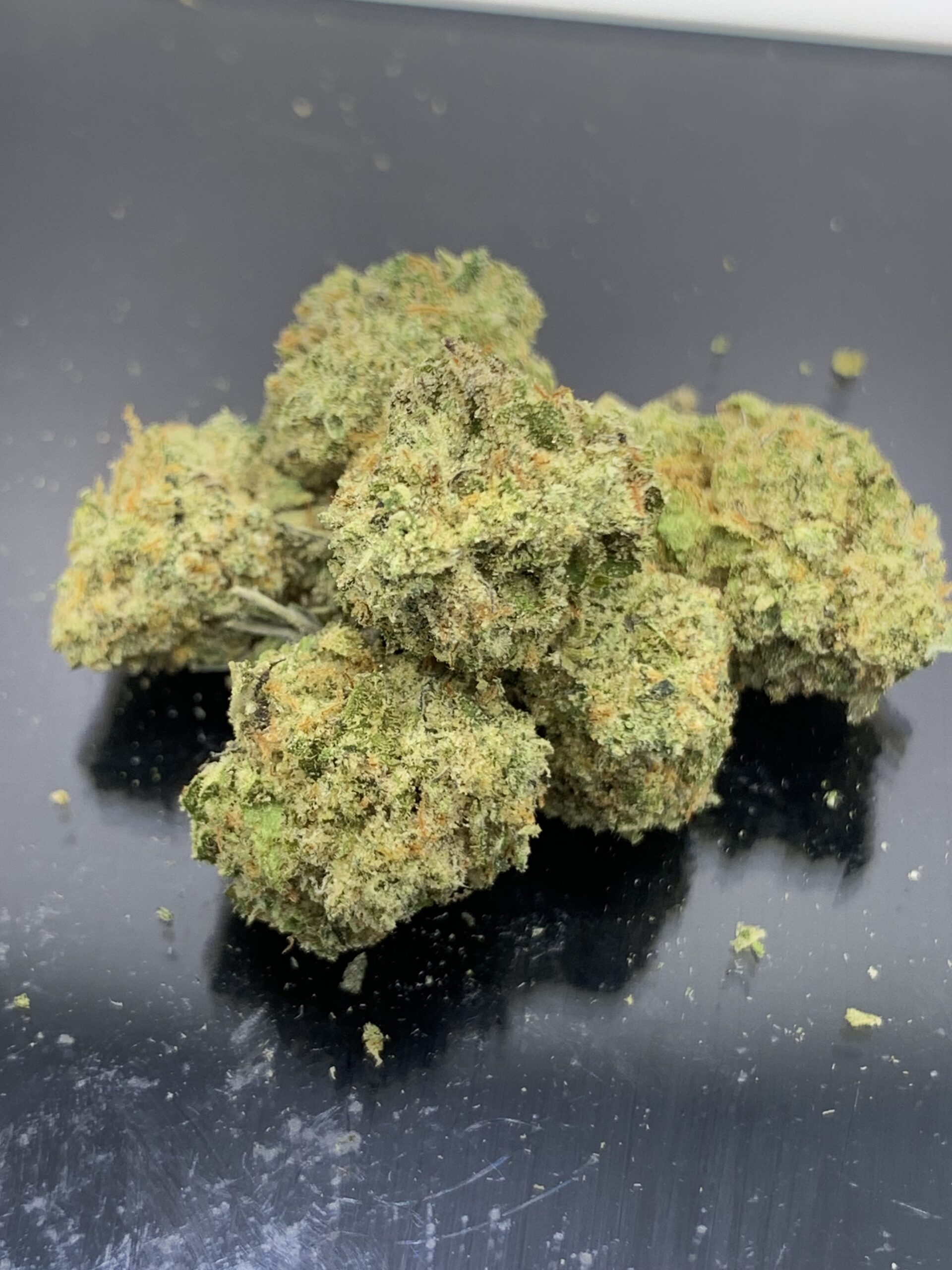 Katsu Bubba Kush is a rare indica dominant hybrid strain created as a phenotype of the infamous Bubba Kush strain. This bud brings on the classic high that you know and love from its parent strain and takes it up a few notches thank to its super high 226-31% average THC level. You’ll feel the high hit you a few minutes after your first toke, building slowly behind the eyes and in the back of your head with calming tingles. This effect will soon take hold of your entire mind, lulling you into an unfocused state of pure relaxation. Soon your body will fall victim, dropping off into a heavy couch-lock that leaves you entirely sedated and immovable for hours on end. These effects give Katsu Bubba Kush an edge in treating a variety of conditions including insomnia, nausea or appetite loss, chronic pain, and depression. Katsu Bubba Kush has a dank herbal flavor with a hint of grape and sweet ripe berries on exhale. The aroma is very earthy and fruity with a pungent herbal overtone that’s dank and sour at times. Katsu Bubba Kush buds have dense round olive green nugs with a super thick frosty blanket of white crystal trichomes and sticky syrupy resin covering each and every inch.