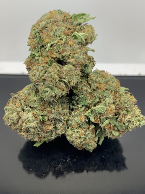 Moon Rock, also known as “Kurupt’s Moonrock,” is an infamous take on the classic Girl Scout Cookies strain, where the nugs are dipped in hash oil and then rolled in kief. This process supercharges the effects of Moon Rock, giving it a THC level of about 32% in total, making it way too strong for inexperienced users. The high hits you hard immediately after you toke, knocking you hard in the head with a cerebral rush that launches your mind into hazy bliss before leaving you completely stoned in mind and body. You’ll be utterly relaxed but totally euphoric as you slip away into a heavy couch-lock and sedation that can easily cause users to fall into a deep and peaceful sleep. Because of these effects and its insanely high THC level, Moon Rock is said to be perfect for treating insomnia, appetite loss, chronic pain, muscle spasms, and cramps. This bud has a unique flavor of earthy nutty hash that has a subtle sweetness to it from the hash oil. The aroma is surprisingly mellow, with a spicy dank overtone that’s accented by sweet earth. Moon Rock buds are round and lumpy, coated in bright kief and dripping with hash oil.