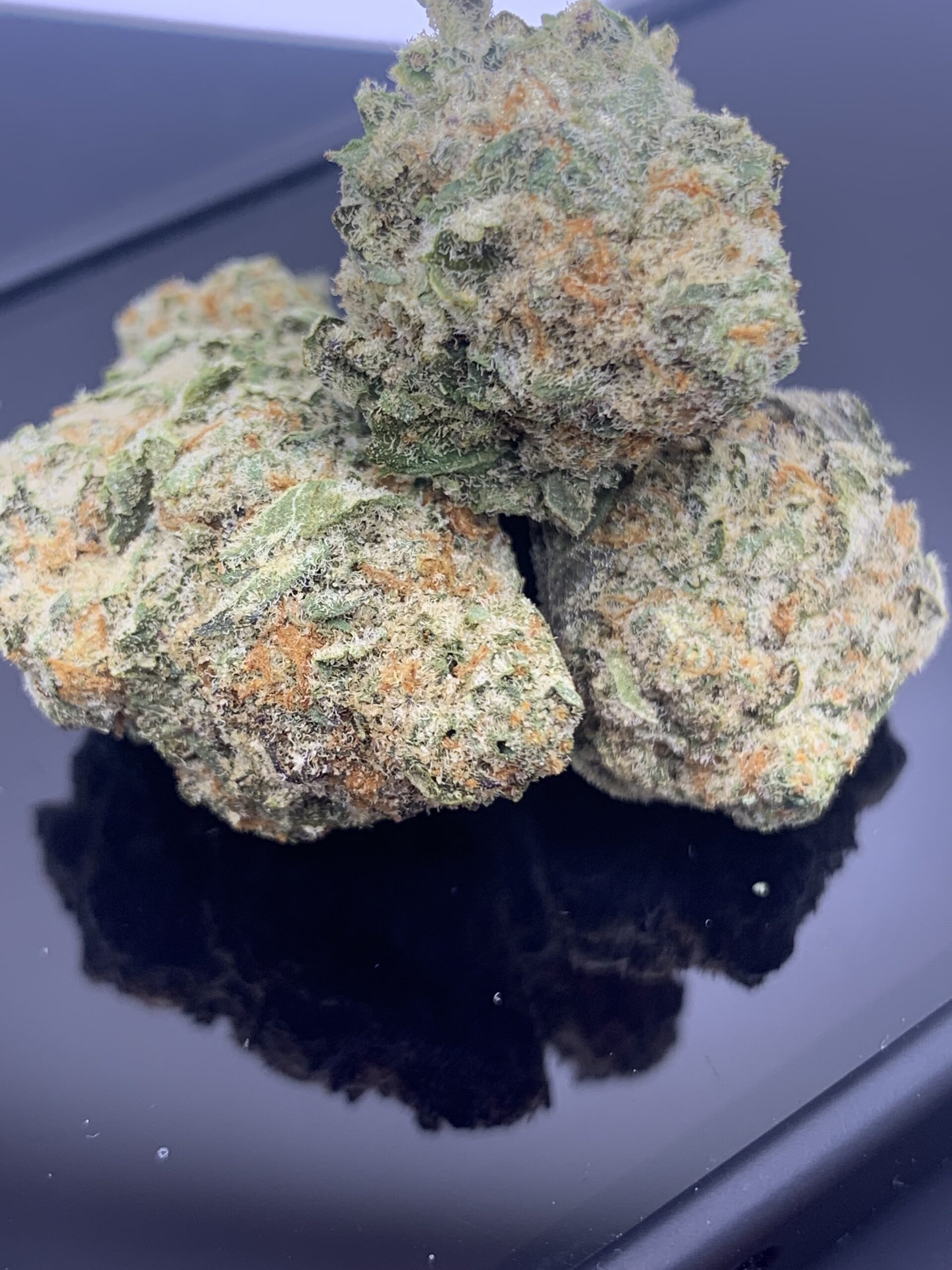 Nightmare Runtz is a slightly sativa dominant hybrid strain (60% sativa/40% indica) created through crossing the tasty White Runtz X Nightmare Cookies strains. This celebrity combination creates an amazingly delicious strain that will have you sleeping soundly rather than experiencing any sort of nightmare. The taste of Nightmare Runtz will leave your mouth watering, with a blend of fruity cherry candies accented by sweet blueberries and zesty, tropical citrus. The aroma is very similar, with a tropical citrus candy overtone accented by fruity berries and lightly savory touches of spicy diesel. The Nightmare Runtz high will hit your brain almost as soon as you exhale, lifting your mind into a place of bright energy and euphoria that instantly wipes your mind clean of any bad moods or negative thinking to speak of. As your mind lifts higher and higher, you may find that your mental state will ebb and flow, alternating between clarity and hazy bliss that can have you giggling at times. Combined with its insanely high 30% average THC level, these effects make Nightmare Runtz a great option for treating chronic stress, chronic pain, cramps or muscle spasms, inflammation and insomnia. This bud has oversized and fluffy, grape-shaped olive green nugs with bright purple undertones, lots of super thin orange hairs and tiny, vibrantly purple-tinted white crystal trichomes.