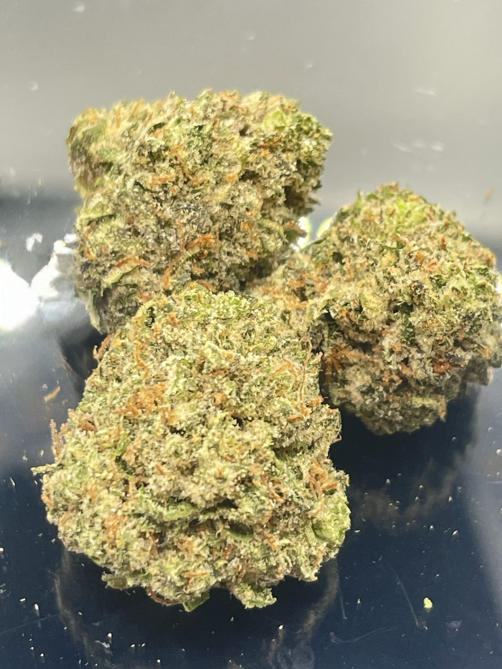 Paris Cake Is an indica dominant hybrid strain (70% indica/30% sativa) created through an unknown combination of other delicious hybrid strains. While its parentage is widely debated, many connoisseurs agree that this bud is like descended from Paris OG X Wedding Cake, although it’s never been officially confirmed. That being said, get ready for one crazy ride with Paris Cake! As soon as you take in her delicious flavor, you’ll be ready to get giggling and enjoy the reset of your day without a single care in the world. The high will settle into your brain quickly, providing a pleasant, numbing effect that has you feeling a bit hazy and out of touch with reality. This, in turn, will leave your eyes drooping and you prone to uncontrollable laughter for little to no reason at all. A calming, stoney physical high wraps things up, locking you down into an immovable state. With these effects and its insanely high 33-35% average THC level, Paris Cake is often suggested to treat very experienced patients with conditions including chronic pain, chronic stress or anxiety, depression or mood swings and cramps or the symptoms of PMS. This bud has a sweet and sugary creamy vanilla cake flavor with a spicy diesel aroma to go right along with it. Paris Cake buds have dense and oversized, grape-shaped olive green nugs with thin, dark orange hairs and tiny, frosty white trichomes.
