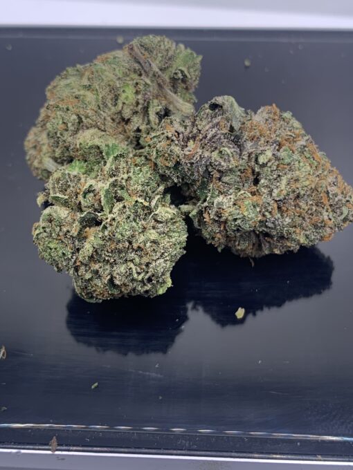 Phoenix Tears is an indica dominant hybrid strain (70% indica/30% sativa) created through an unknown cross of other hybrid strains. This bud is a concentrate favorite due to its super high potency level and mellow, clean flavor that will leave you coming back for more again and again. The Phoenix Tears high is one that is said to be ‘rejuvenating’ and ‘refreshing,’ giving you a feeling like you’re actually rising from the ashes. You’ll find your mind cleared and lifted, filled with a sense of unmatched happiness that helps to brighten the brain and leave you feeling like you don’t have a care in the world. A light sense of relaxation accompanies this heady boost, helping to keep your body calm as your mind settles into this new plane of mellow bliss. With these effects and its insanely high 35-41% average THC level, Phoenix Tears is only recommended for very experienced patients with conditions including chronic stress or anxiety, chronic pain, depression or mood swings and PTSD. This bud has a sweet and flowery herbal tea flavor with a spicy and woody aroma to go right along with it. Phoenix Tears buds have fluffy and rounded bright neon green nugs with golden undertones, super thin orange hairs and a frosty blanket of tiny, sparkling golden-white crystal trichomes topped with layers of sticky resin.