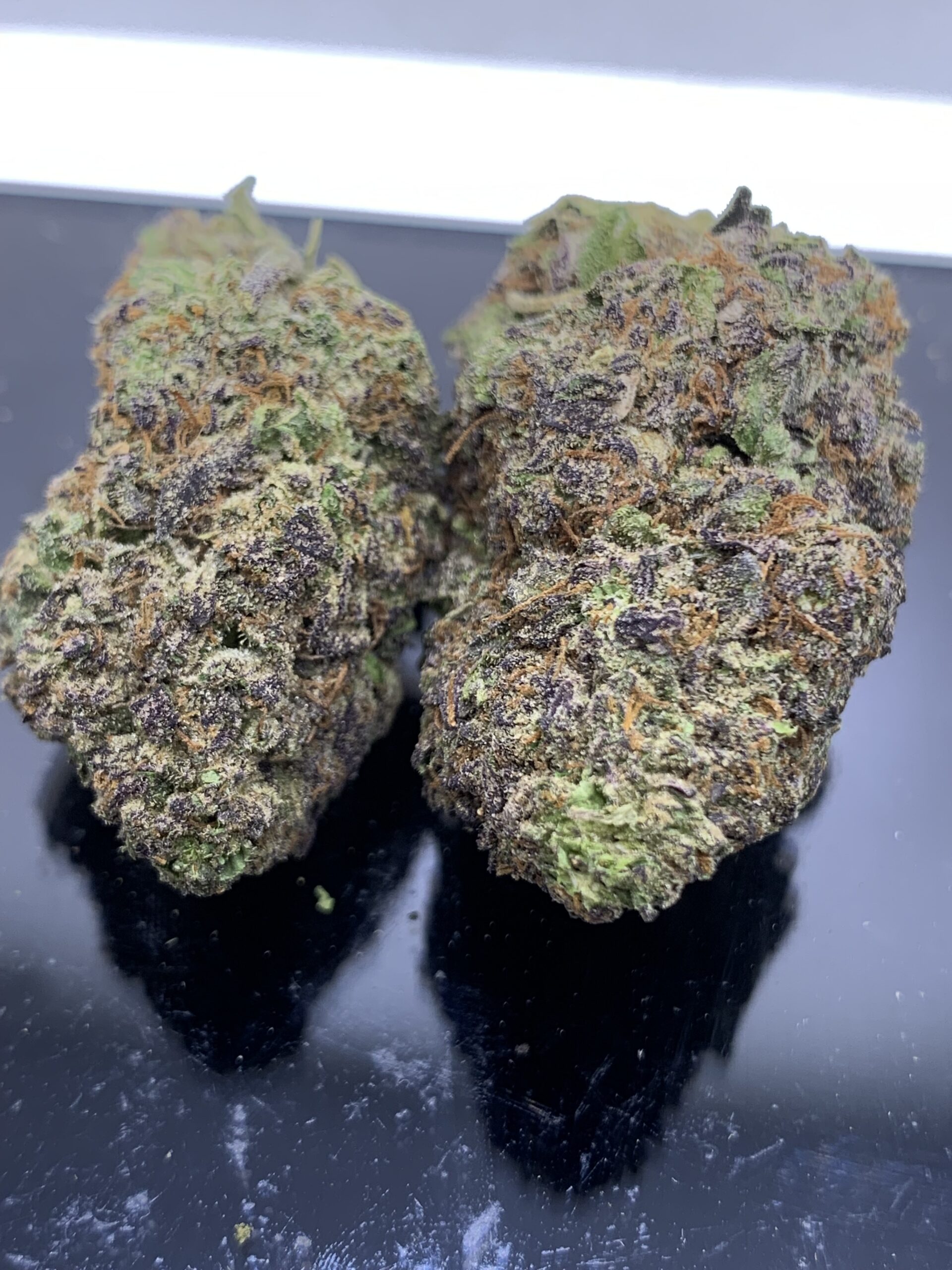 Purple Urkle BX1, also known as “Purple Urkel BX1,” is an indica dominant hybrid strain (70% indica/30% sativa) created through crossing the classic Purple Urkel X Purple Urkel strains. The perfect high-powered child of one of the world’s most infamous strains, Purple Urkle BX1 packs a creative and calming high that’s great for a lazy afternoon when you want nothing more than to enjoy yourself with friends and family. You’ll feel the effects settle in a few minutes after your final exhale, filling your brain with an expansive sense of headiness that is calming, soothing and numbing. You’ll feel happy with a sharp increase in creativity and sociability that lends itself well to any social situations. At the same time, a lightly calming body high will wash over you, helping you to feel relaxed without causing any sedation to speak of. With these effects and its high 27-31% average THC level, Purple Urkle BX1 is often chosen to treat those suffering from conditions such as chronic stress or anxiety, depression or mood swings, PTSD and appetite loss or nausea. This bud has a sweet and fruity cherry berry flavor with a lightly spicy skunky exhale. The aroma is very much the same, with a fruity cherry overtone accented by spicy skunk and sweet pungency. Purple Urkle BX1 buds have oversized and heavy pepper-shaped olive green nugs with thin orange hairs, purple undertones and purple-tinted white crystal trichomes