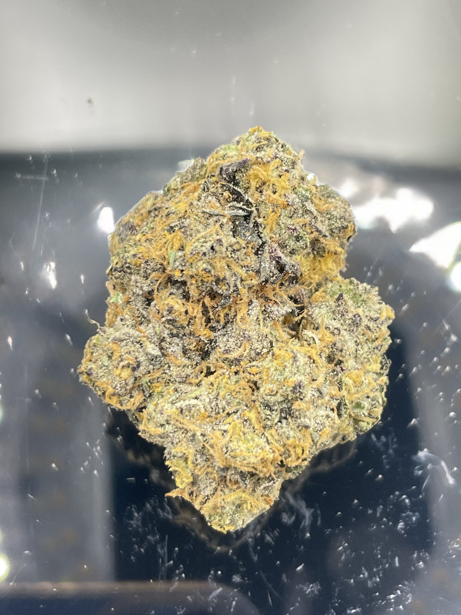 Rasta Pie is a slightly indica dominant hybrid strain (60% indica/40% sativa) created through crossing the potent Triangle Kush X Animal Mints strains. A bright and happy bud with a classic flavor, Rasta Pie is the perfect balanced option for any fan of iconic hybrid strains. The Rasta Pie high will hit you quickly, filling your mind with an immediate sense of lifted, energizing euphoria. You’ll feel artistically inspired and super outgoing at this point, eager to get creative or get chatting, but unable to really stay focused or on task at all. This energy will soon begin to hit your body, inspiring you to get on your feet and get moving, if you can get passed the heavy physical relaxation that has you feeling locked down to the couch. Thanks to these effects and its insanely high 30-39% average THC level, Rasta Pie is often suggested for only the most experienced patients who are looking for relief from the symptoms of conditions including chronic stress or PTSD, depression or mood swings, chronic fatigue and headaches or migraines. This bud has a sweet and creamy citrusy vanilla flavor with a super dank and pungent aroma to go along with it. Rasta Pie buds have dense, triangle-shaped bright neon green nugs with vibrant golden-amber undertones, thin orange hairs and a frosty coating of chunky, golden-amber crystal trichomes.