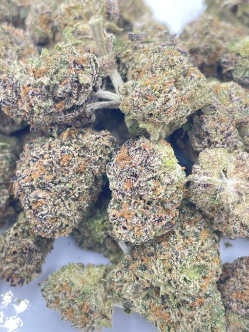 Red Beard is a super rare indica dominant hybrid strain (70% indica/30% sativa) created through an unknown combination of other hybrid strains. Although it’s hard to find on your average market, Red Beard is often sought after for its super powered potency and long-lasting high. The Red Beard high hits you almost as soon as you exhale, rushing through your brain with a warming and lifting happiness that pushes out any negative or racing thoughts, leaving you feeling glowing. As your mind settles into this hazy and unfocused state, a soothing body high will sneak into your limbs, leaving you fully relaxed from head to toe and pretty sleepy before you know it. In combination with its super high 33% + average THC level, these effects make Red Beard the perfect choice for treating those suffering from conditions such as chronic pain, appetite loss or nausea, insomnia, depression and chronic stress. This bud has a sweet and spicy flowery skunky flavor with a lightly earthy exhale. The aroma is pungent and earthy with a skunky pepper overtone accented by slightly sweet flowers. Red Beard buds have fat and fluffy grape-shaped forest green nugs with lots of dark red-orange hairs and a coating of tiny reddish amber crystal trichomes.