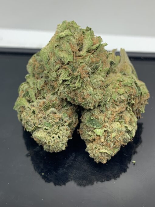 Space Fruit, also known as “SpaceFruit,” is a rare sativa dominant hybrid strain (80% sativa/20% indica) created through crossing the infamous Super Lemon Haze X Blue Satellite strains. Looking for the ultimate berry flavor that’ll give you the kick that you need to get up and moving? Look no further. Space Fruit packs a decadently eye-opening chemical berry flavor with a super sour lemon exhale that will leave you begging for more. The aroma follows the same profile, with hints of earthiness to it as the nugs are burned. The Space Fruit high comes on very quickly after your first toke, smashing into the front of your head behind the eyes with an almost dazed lifted effect. A sense of creative energy comes next, almost leaving you frenzied with creative visions as you get to work on your to-do list or simply start working on household chores. Thanks to these effects and its high 29% average THC level, Space Fruit is said to be perfect for treating chronic stress, depression, mood swings, migraines or headaches, and nausea. This bud has super dense grape-shaped dusty green nugs with vibrant orange hairs and a coating of super frosty thick tiny amber crystal trichomes.