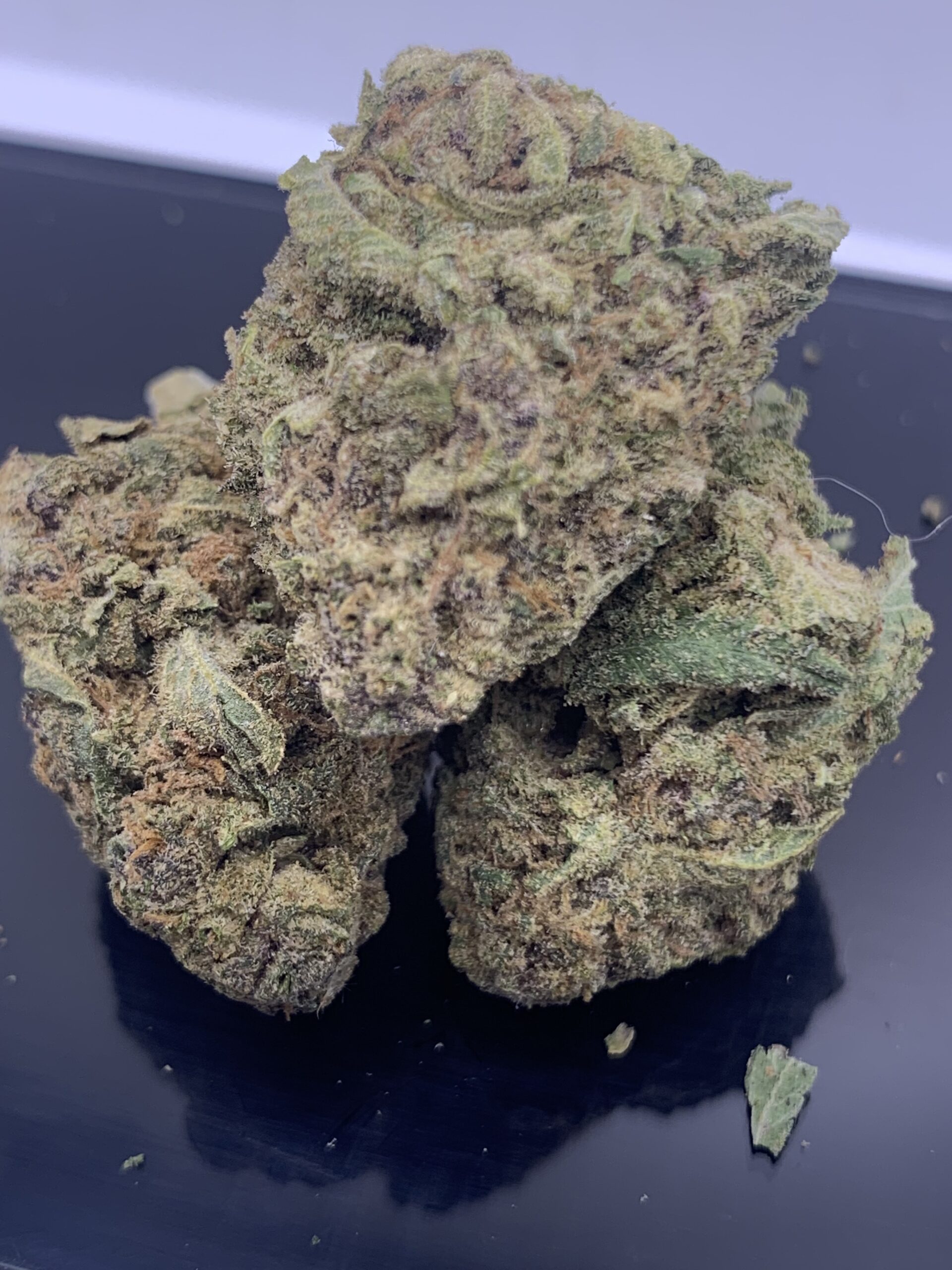 Trainwreck didn’t get its name or claim to fame in the marijuana community for no reason at all. This exhilarating hybrid strain has mind blowing components that will hit you like a train after just a couple of hits. A combination of 2 sativas (Mexican and Thai) and one indica (Afghani), this strain is nothing short of a mental roller coaster ride. Although Trainwreck is mainly sativa dominant (80:20 sativa/indica ratio), you can expect a mellowing body high in addition to a cognitive high that administers imaginative and inventive thoughts. Patients commonly use Trainwreck to relieve pain, PTSD and stress. You can smoke this strain comfortably throughout the day even with its super high potency. It’s long green leaves are accompanied by a pine/citrus aroma that can’t be mistaken. You can expect a noticeable after taste of lemon with a slight cough when inhaling this strain.. There’s definitely a heavy amount of trichomes (hairs) on this strain which gives it a light green color and sometimes a subtle hint of gray.