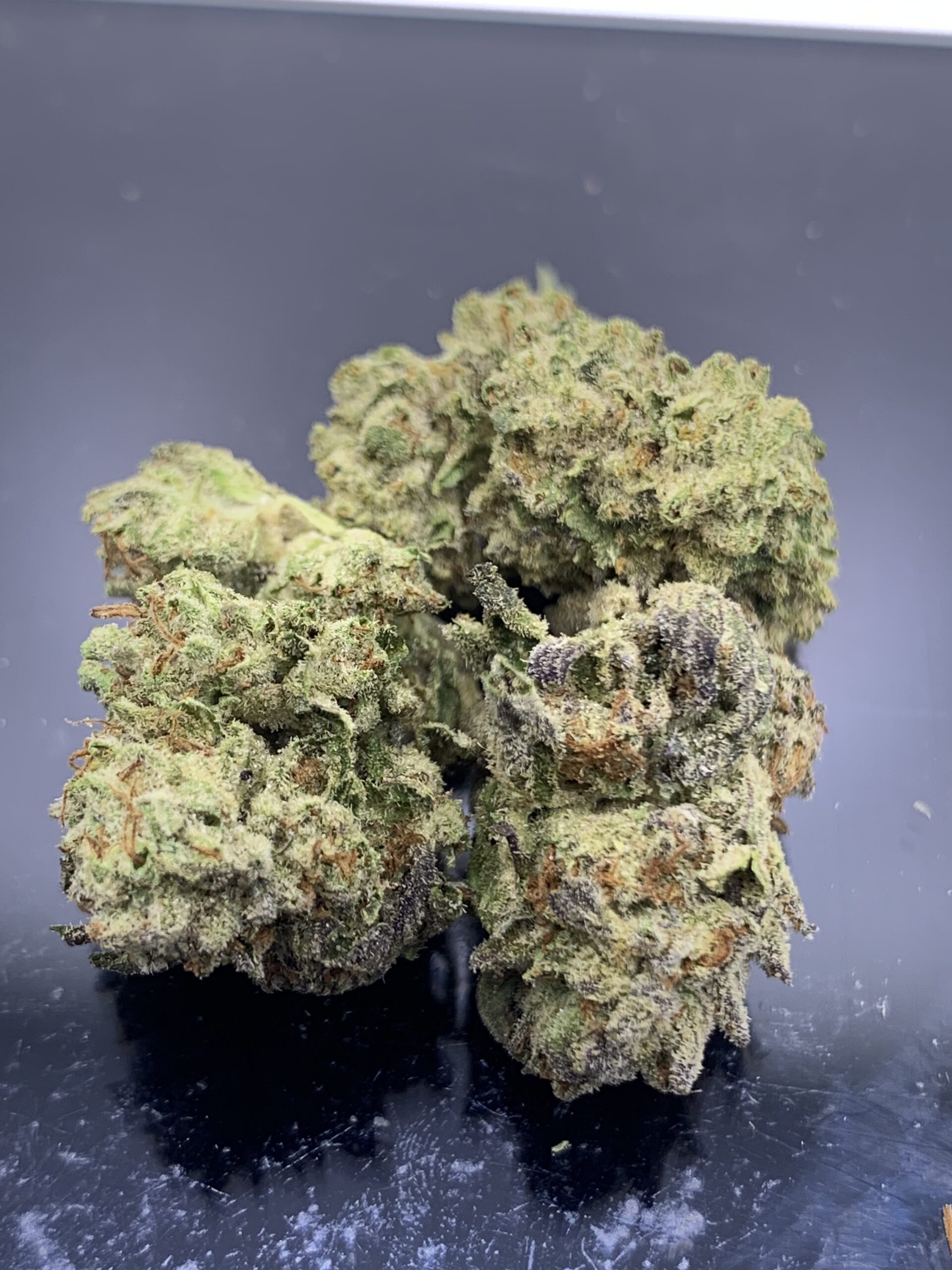 White Death is an indica dominant hybrid strain (70% indica/30% sativa) created through crossing the infamous White WidowX Death Bubba strains. Don’t let the name scare you – the only thing that White Death will kill is your aches and pains. The White Death high is one for the ages, with potent effects that will knock you flat out if you’re not careful with your dosage. It comes on with a creeping effect, slowly seeping its way into your mind before taking hold and lifting you to new heights of giddy and unfocused euphoria. As your mind fades into oblivion, your body will begin to settle into a relaxed and couch-locked state of pure bliss. This combination quickly turns sedative, leaving you dozing off for a long and peaceful sleep. With these heavy effects and its super high 28-31% average THC level, White Death is often chosen to treat conditions such as depression, appetite loss or nausea, chronic stress, insomnia and chronic pain. This bud has a skunky and woody gassy flavor with an earthy and pungent aroma to match. White Death buds have tapered spade-shaped forest green nugs with lots of thin orange hairs and a coating of frosty chunky milky white crystal trichomes.